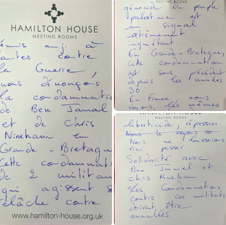 “Meeting today in Nantes against the war, we denounce the conviction of Ben Jamal and Chris Nineham in the UK. This conviction of two activists who tirelessly campaign against the genocide of the Palestinian people is a very worrying sign. In the UK, this conviction is considered unprecedented since the 1930s. In France, we are seeing the same ingredients of the same repressive, freedom-crushing policies. We will not let this go unchallenged. Solidarity with Ben Jamal and Chris Nineham. The convictions against these activists must be overturned.”