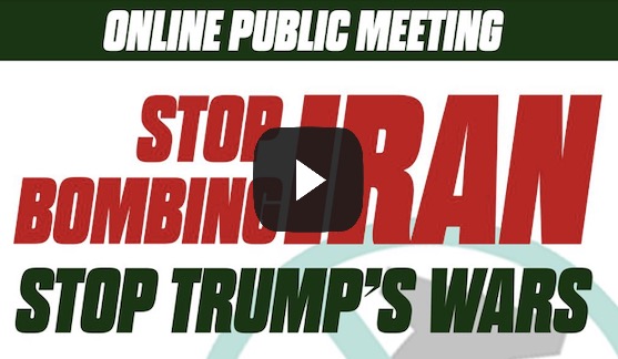 Watch back our online public meeting from 3 March 2026. Tariq Ali, Maryam Eslamdoust, Trita Parsi, Kate Hudson and Lindsey German discuss the illegal war being executed by the US and Israel against Iran, Starmer’s supine support and the dangers of regional conflagration.
