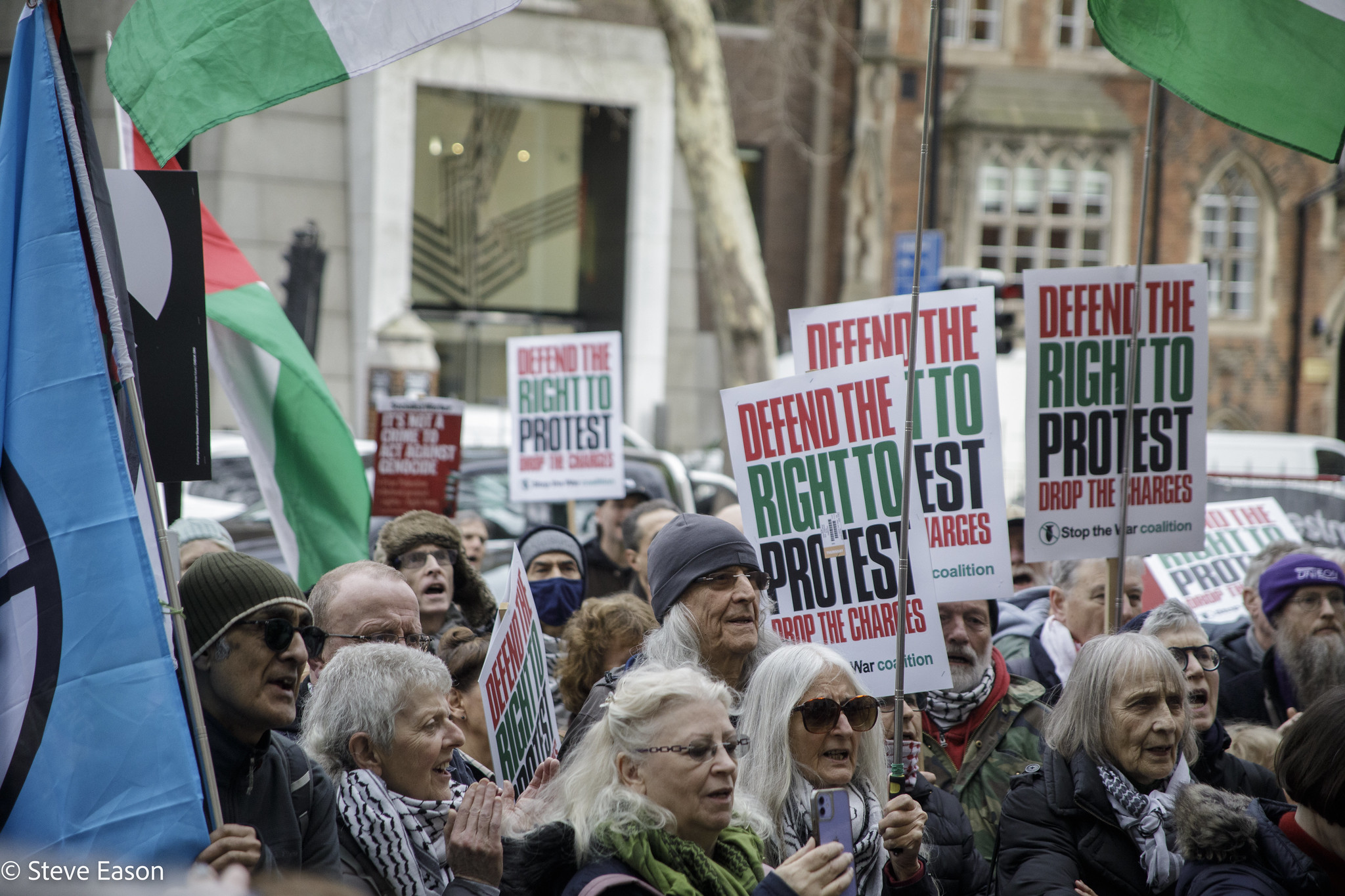 Today’s trial drew a large crowd chanting: “Defend the right to protest, drop the charges now!”