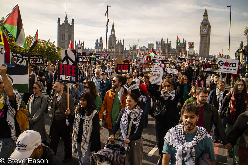 This pattern also stretches far beyond Britain, with similar mass demonstrations taking place around the globe. In Europe, some of the protests have been huge; two weeks ago, two million people rallied across Italy as part of a one-day general strike to support Gaza, and 100,000 people attended demonstrations in the Spanish cities of Madrid and Barcelona. Further demonstrations took place in Portugal, France and Greece.