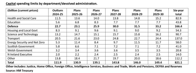 The 152-page document accompanying the Budget shows military spending rising 8.43% to £90 billion in 2026-27, compared to a 6.14% increase for health and the allocation for education shrinking by 0.68%. The 2026-27 arms budget includes £25.9 billion of capital spending, which is a rising proportion of the overall cost. Cumulatively over the six years from 2024-25 to 2029-30 (see table below), capital spending on arms – £166.4 billion – will be nearly quadruple the amount spent on education (£43.8 billion) and double the spending on the NHS and social care (£82.9 billion).